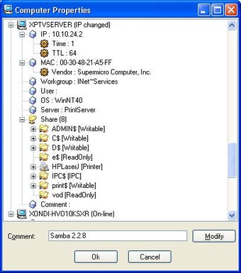 El programa realiza un rápido análisis de la red y muestra en su interfaz una lista de todas las máquinas que forman parte de ella, con numerosos datos informativos sobre cada una de ellas: nombre del PC, dirección IP, dirección MAC, sistema operativo, etc.